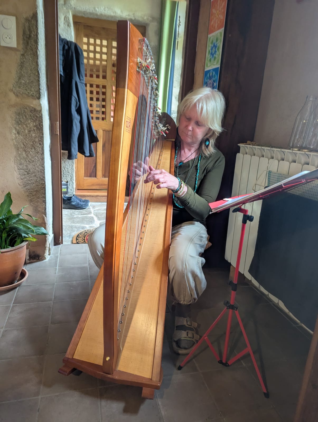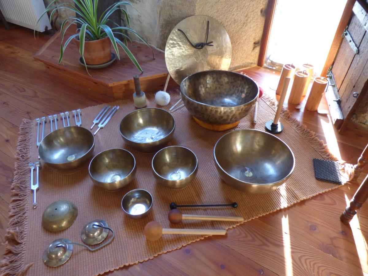 Ici, chaque photo raconte un moment de paix, de partage ou de beauté naturelle : la maison et son jardin, la chambre d’hôtes lumineuse, les cercles autour du feu, les bols chantants et les fleurs du jardin.